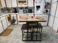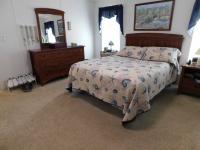 Welcome to this beautifully maintained 1996 Palm Harbor home offering 3 bedrooms, 2 bathrooms, and a generous 1,568 sq. ft. of living space (56' x 28'). From the carport, step into a bright and airy family room that flows seamlessly into the heart of the home-an open floorplan featuring a welcoming dining area, a cozy yet spacious living room, and a well-appointed kitchen with abundant cabinetry and counter space. The master suite is impressively sized, complete with a walk-in closet and a remodeled en suite bathroom. The garden tub has been replaced with a practical storage/pantry closet, adding convenience without sacrificing charm. On the opposite side of the home, two additional bedrooms offer privacy for guests. Two of the three bedrooms are furnished with Sleep Number beds for personalized comfort. Adjacent to the kitchen, the laundry area leads directly to the carport and extended driveway, providing ample parking. Outside, enjoy a beautifully landscaped yard with an irrigation system and an oversized two-room shed featuring double doors-perfect for easy golf cart storage. This fully furnished home includes all appliances and welcomes you with thoughtful touches throughout. And the best part-a brand-new roof installed in 2025 ensures peace of mind for years to come.