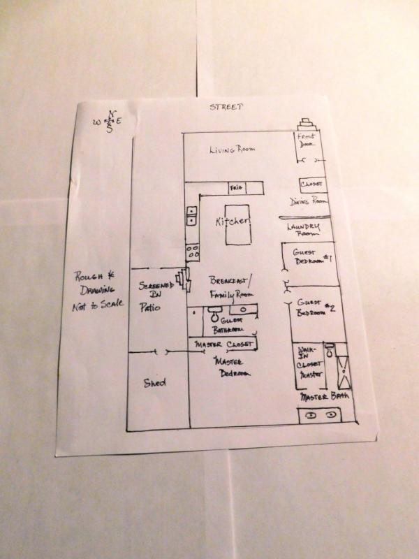 Along with the pictures and the rough drawing I will be walking you through this home, room by room.