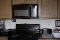 The kitchen has floor to ceiling cabinets with the following appliances: