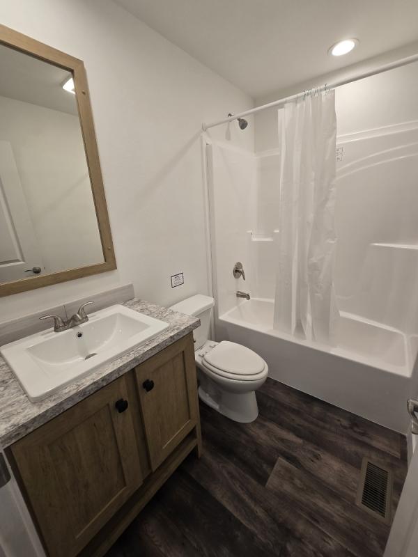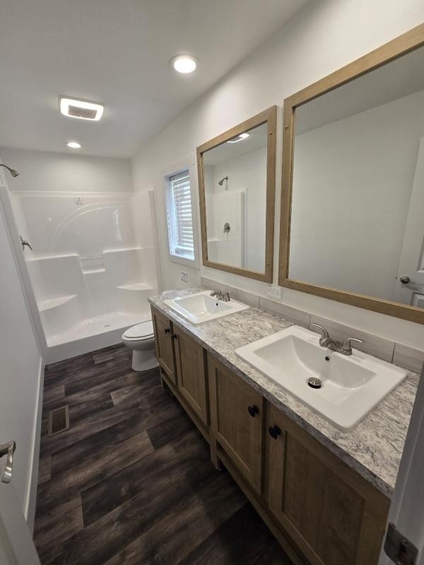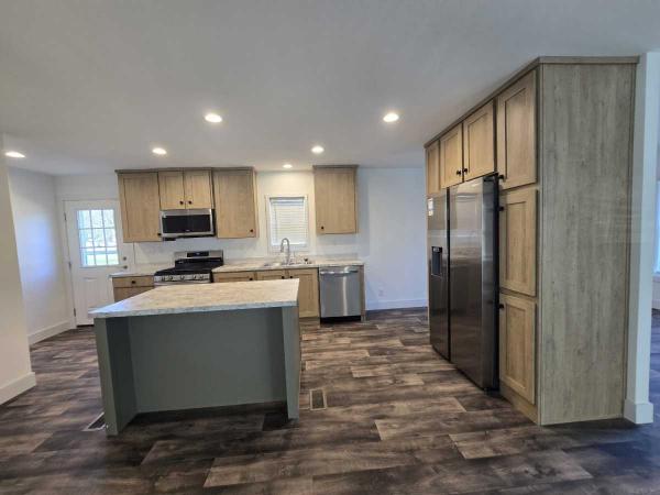 Brand New Double-Wide Model Home in Eastview Mobile Home Park! This eBuilt home has 8' flat ceilings throughout, DuraCraft soft close cabinets, brand new stainless steel Samsung Smart appliances, and elongated toilets. This home comes with a 40 Gallon Hybrid Water Heater with a Heat Pump, a High-Efficiency Gas Furnace with an Ecobee smart thermostat, and a brand-new shed. A covered deck and steps are also included.