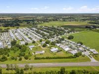 Welcome to your future oasis! This stunning 2022 Jacobsen Imperial is the newest home in the highly sought-after Southfork community. With 2 bedrooms, 2 bathrooms, and 1,404 sq. ft. (26' x 54') of comfortable living space, this home offers the perfect blend of modern design and relaxed Florida living. As you arrive you will appreciate the long extended driveway and inviting screened porch featuring TREX decking and two ceiling fans ----- the idea spot to relax and enjoy the breeze. Step inside to a spacious open-concept layout that seamlessly connects the living room, dining area, and kitchen. The kitchen boasts a center island, plenty of counter and cabinet space, and modern lighting and finishes----perfect for both, everyday living or entertaining guests making new memories. Down the hall, you will find a laundry room with a large stackable washer and dryer, along with two generous bedrooms. The primary master suite features a private en suite bathroom and a large walk-in closet for ultimate convenience. The home is only three years old and has had just one owner, ensuring everything feels fresh and well cared for. Outside there is a double insulated storage shed offering plenty of room for your tools, hobbies, or seasonal décor. Located just steps away from all the wonderful Southfork amenities, this home truly has it all ---- comfort, style, and community.