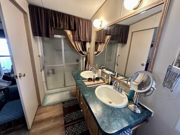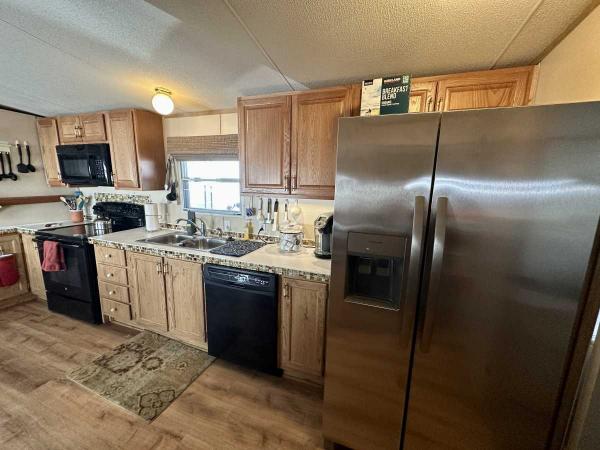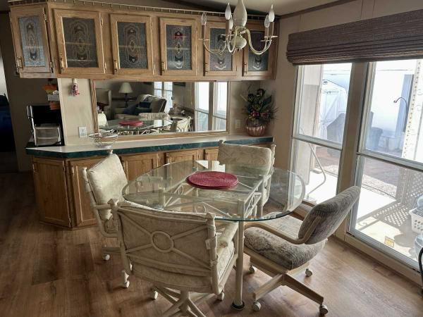 Low lot rent at only $610 month in this 55+ park! Home is bring sold fully furnished to inc TV, dishes, and linens. Charming screened AZ Room decorated w colorful plants. Split floor plan w bedroom at each end of the home. Front bedroom has wall closet. Open living room to informal dining area w built in hutch. Mix of carpet and wood laminate throughout the home. Kitchen w stainless side by side refrigerator w water and ice. Ample cabinets. Updated main floor guest bath has standard tub/shower.