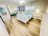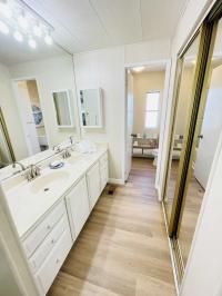 Beautiful! Move-in ready. 2 Bedroom / 2 Bathroom mobilehome located in the wonderful all-age community of New Villa Valencia Mobile Estates in the heart of Orange County. Home offers 1,344. sq. ft of living space, as well as, a large covered porch and patio for outdoor enjoyment. The manicured hedges, fruit trees, almost new exterior paint, and brick steps compliment the home's curb appeal.