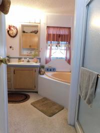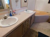 Step into this stunning 1994 Palm Harbor home offering 2 bedrooms, 2 bathrooms, and 1,428 sq. ft. of comfortable living space (51' x 28').Outside, you'll love the enclosed Florida room and the dedicated golf cart driveway that leads to a covered parking area-also perfect as a peaceful patio space with no rear neighbors. A spacious shed houses the washer and dryer and provides abundant storage for all your extras. One of the home's standout upgrades is the brand-new shingle roof installed in February 2025. Enter the home through the Florida room and you're welcomed into an open, inviting floor plan ideal for daily living and entertaining. The kitchen features stainless steel appliances, ample counter top and cabinet space, and a charming breakfast nook. Just off the living room is a cozy family room complete with a fireplace. Both bedrooms offer en suite bathrooms with stand-up showers and relaxing garden tubs. Best of all, this beautiful home comes fully furnished-move right in and enjoy!