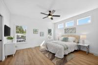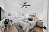 Inside, the bright open layout features a large quartz kitchen island, stainless steel appliances, a walk-in pantry, and skylights that fill the home with natural light. The master suite boasts a grand walk-in closet, dual vanities, and a beautifully crafted walk-in shower. Two spacious guest rooms offer comfort for visitors.
