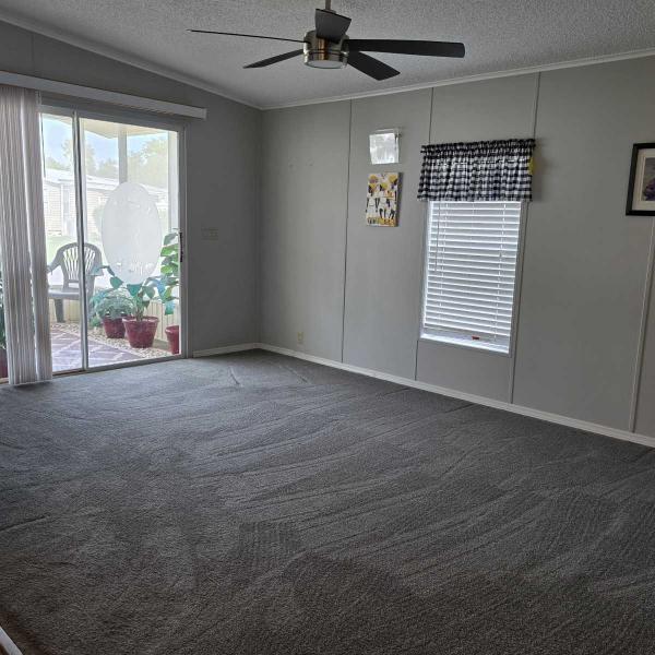 This unfurnished 2 bedroom 2 bath home is located in a 55+ gated community. A screened in front lanai gives you privacy while enjoying a nice breeze. The shed at the end of the covered carport could double as a "man cave" or "she shed". Roof over in 2021, hot water tank in 2019, stove and refrigerator in 2021, washer and dryer in 2023. Don't pass this one by!