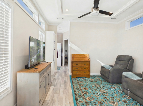 Welcome Home! Come enjoy the relaxing lifestyle of The Cottages, located inside Keystone Heights RV Resort! This rare gem of a home is nestled on one of the largest corner lots in the community. Enjoy the beautiful sunrises from the comfort of your screened in front porch with electric fireplace, this home offers a spacious kitchen with full tile backsplash, solid surface counters, dishwasher, and appliances. Beautiful 9 foot ceilings make even this cozy space feel large. Storage shed outside to stay with home. An absolute must see!