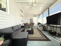 Elevated Sophistication describes the interior of this home - the seller has accomplished a comfortable modern look by incorporating cool grays with whites. The vaulted ceilings add a dramatic flair while the space is adorned by natural light. Newer Luxury Vinyl Woodgrain Plank can be found throughout the home. The Kitchen features White Shaker Style Cabinets w/slow closing doors/drawers, beautiful quartz countertops, gleaming white subway tile backsplash and top of the line stainless steel appliances. The bedrooms are both a very comfortable size. The guest bath is a larger 3 piece with newer vanities, stools, lighting, flooring & features a tub/shower combination. The Primary Bedroom is HUGE and boasts a large bay window, open dressing area, and walk-in closet. The Primary Ensuite Bath includes a larger newer vanity, stool and walk in shower. There is a wonderful sunroom adjacent to the Living Room that is currently being used as an office space. This space walks out to a covered open porch area. In addition to the open porch, there is a wonderful, screened lanai that offers versatile space for lounging and entertaining. It features a beautiful ceramic tile floor. Toward the rear of the lanai you'll find a large 8x11 storage room w/washer/dryer and an access door to the paver patio behind the home! Toward the front of the lanai is the oversized 2 car carport that has been widened to accommodate a golf cart! Lincolnshire has been rated #1 mobile home community in Largo for 2025 by "Business Rate" & Google Reviews! Come see what your new home could look like! Please forward questions and inquiries to Randy!