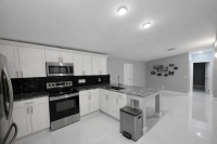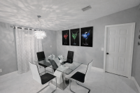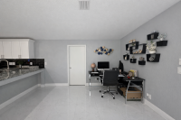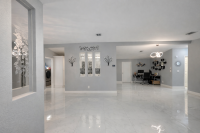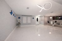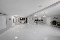 The 200-square-foot ceramic-tiled screened entry foyer welcomes you into the main residence, where you are immediately greeted by a breathtaking open-concept layout. The oversized living room, formal dining area, kitchen, and office space are finished with crisp white drywall, bright white ceilings, shiny ceramic tile floors, and ultra-modern lighting throughout.