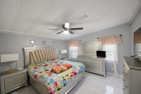 Now offered is a massive and luxurious 2,091-square-foot waterfront double-wide home, showcasing stucco and vinyl siding, a shingled roof, and exceptional indoor-outdoor living. This expansive 5-bedroom, 3-bath residence includes a private 451-square-foot mother-in-law suite with its own lakefront patio, making it ideal for multi-generational living, guests, or extended family.