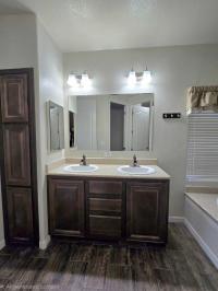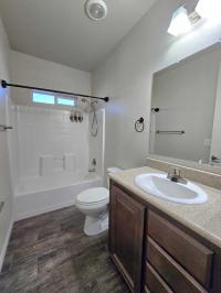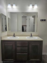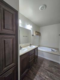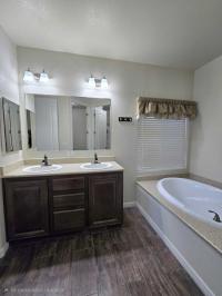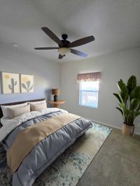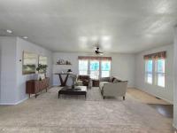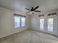 Privately positioned at the end of the street in a desirable 55+ community, this well-maintained 3 bedroom / 2 bathroom home offers 1,736 sq ft and sits on one of the best lots in the park: at the end of a dead end street with no neighbor on one side and no neighbor behind the backyard, giving you extra privacy and peace. A sturdy block wall lines the side and back of the large side yard, creating a secure, quiet outdoor space for gardening, pets, or simply relaxing in the sun. Inside, the open great room flows into the kitchen and dining areas, with large windows letting in plenty of natural light. The kitchen is a standout: solid surface counters, rich wood tone cabinets, and stainless appliances-including a gas range-give a durable, updated look that still feels warm and homey. The primary suite has double doors that open directly to the shaded deck, plus an ensuite bath with dual sinks and a soaking tub. Two additional bedrooms offer flexibility for guests, hobbies, or an office. This home is perfect for someone who values privacy without being isolated: you're still in a welcoming 55+ park setting, but on a lot that feels more secluded than most. Whether you're downsizing, relocating, or simply seeking a low?maintenance home on a special lot, this one is ready to move in and Leased land: Monthly space rent is $545/month. Financing is available.