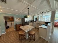 This beautiful Palm Harbor home is furnished. As you arrive at the home, you will see the oversized expanded driveway with cement pad alongside of the garage, screen garage door, tasteful landscaping, and gutters around the home. As you enter the home, you are in the primary living area which offers plenty of seating for relaxing with a built-in entertainment cabinet with electric fireplace. This room has lots of natural lighting from the wall of front windows and also has a ceiling fan. The dining room has a large table with chairs, pendant light, and 2 cabinets. The kitchen is a large open space with lots of surface space and cabinets. There is a large cutout window to the living area. There is a small island with a drawer and storage cabinets as well as hanging pendant lights. The guest bathroom has a single sink vanity with tub and shower with shiplap walls and a linen closet in the hallway. The guest bedroom has a queen bed with bedroom furniture, ceiling fan, and nice size closet. The primary bedroom has a king bed with bedroom furniture, walk-in closet, and ceiling fan. The primary bathroom has a single sink vanity and tile walk-in shower with glass door. The laundry room is off the kitchen between the garage and the lanai. The lanai is a large space, (15' x 16'), for relaxing and entertaining. It has slide windows with screens, a ceiling fan, and a beverage refrigerator. This home comes with a golf cart.