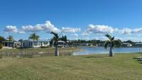 This is the one you've been waiting for!! This beautifully updated Jacobsen home offers an open floor plan designed for comfort, efficiency, and Florida living at its best. The home features energy-saving windows, a tankless water heater, whole-house surge protection, and dedicated A/C surge protection for added peace of mind. Inside, you'll find newer hardwood floors with wood-look laminate, elegant travertine tile, and durable vinyl flooring throughout. The kitchen is equipped with top-of-the-line stainless steel appliances, perfect for both everyday living and entertaining. An oversized, air-conditioned lanai (mini split) with tiled flooring and powered shades provides the ideal space to relax while enjoying tranquil views of the pool, spa, and lake, all conveniently located adjacent to the clubhouse. This exceptional home blends quality upgrades with a prime location in a desirable 55+ Southwest Florida community-truly must-see.