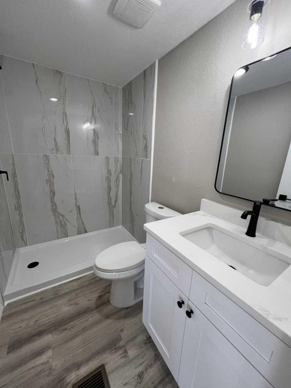 Lot rent is $792 per month, which includes water, sewer, trash service, and access to the clubhouse and shuffleboard courts.