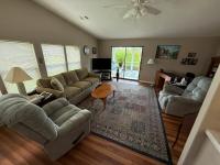 This well-cared for Palm Harbor home is being sold partially furnished. This home is located on a corner on a quiet street in the front of the community. When you arrive at the home, you will see the large driveway, tasteful landscape, and a covered entryway. When you enter the home, you will see the open floorplan. The primary living area is a great space to relax with views out to the lanai and lots of natural lighting due to the wall of windows. The dining area has a table with chairs with pendant light. The kitchen is open with lots of surface space and cabinets, and pantry closet. The guest bathroom has a single sink vanity, tub with shower and washer and dryer. The guest bedroom has a bed with furniture, closet and ceiling fan. The primary bedroom is a large room with a ceiling fan and walk-in closet. The primary bathroom has a large single sink vanity with walk-in shower. The lanai is a relaxing place to enjoy the fresh air.