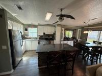 This well-cared for home is being sold fully furnished. When you arrive at the home, you will see the oversized driveway, tasteful landscaping, and gutters around the home. When you enter the home, you are in the foyer which has access to the garage. The primary living area has plenty of seating for relaxing or entertaining including a 75" TV and a ceiling fan. The kitchen has granite countertops, stainless appliances, and lots of cabinets. There is a stone backsplash, stone around the island base, and it carries into the dining room in the built-in wall unit. The dining area has a table with chairs and pendant light. The guest bedroom has a queen bed with furniture and a wall-length closet. There is an office with built-in desk, shelves above the desk, and a closet. The guest bathroom has a single sink vanity with tub and shower. The primary bedroom is large in size with a queen bed, bedroom furniture, a double wall length closet, and a ceiling fan. The primary bathroom has a single sink vanity, walk-in closet with custom built organizer, and a walk-in tile shower. The lanai provides beautiful views of the golf course and is a great space to enjoy the fresh air or watch your favorite shows on the TV. This home comes with a golf cart.