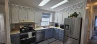 PRICE ADJUSTMENT! Sellers are Motivated! Enjoy LAKEFRONT living in the highly sought-after Silver Dollar Golf, Trap Club & RV Resort. This high-end lakefront mobile home offers 2 bedrooms, 2 full baths, and 1,200 square feet of thoughtfully designed living space with spectacular lake views from the main living area, primary bedroom, and the expansive 17-foot enclosed rear sunroom. The home has been freshly painted throughout and features seamless luxury vinyl plank flooring, updated light fixtures, electrical outlets and switches, new toilets, a one-year-old HVAC system, and a water heater approximately 2-3 years old. The kitchen showcases newer appliances including a double oven and Samsung French door refrigerator, newly painted cabinetry, a convenient pass-through breakfast bar, and flows into a spacious living area with a separate dining room and built-in cabinetry. Abundant storage is found throughout, including multiple closets and custom shelving. A bonus room with a stovetop and window provides flexible use as an office, craft room, or guest space. An attached 19' x 11' shed where the washer and dryer are located, adds exceptional functionality with built-in shelving, workshop space, utility sink, extra refrigerator, and ample room for tools and recreational gear. The newly rebuilt dock enhances the lakefront lifestyle, while the home's unique setting-lake behind and wooded preserve across the street-offers unmatched privacy. Offered fully furnished, including kitchenware and housewares, this turnkey property is ideal for refined resort living. Purchase includes termite bond through end of 2026.
