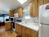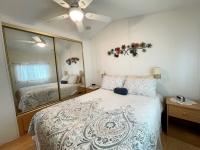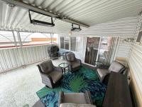 Below Market Value! With total of 692 sq ft of living space this beautiful home with an Arizona Room/Addition is designed to achieve maximum efficiency and is perfect for a seasonal retreat or a full-time residence. Fully furnished, it features a spacious living room with built-in corner cabinet, loveseat sleeper, 2 rocking recliner chairs, end tables, flat screen TV, sliding glass door with vertical blinds, and a ceiling fan. The chef's delight eat-in kitchen boast ample cabinets and counter space, built-in china cabinets, pots and pans, dishes, silverware, table and chairs, full-size appliances, ceiling fan, and a bay window. In the bedroom you will find a newer queen size bed, night stands, wall-to-wall closet with mirrored glass doors and built-in drawers, wall mounted cabinets, built-in dresser, and a ceiling fan. The bathroom is quite spacious and offers a large vanity, shower/tub combo and a wall-mounted cabinet. The great 16'x17' Arizona Room/Addition, can be effectively used as a second bedroom, boasts lots of lighted closet space and storage, finished drywall, ceramic tile flooring, sofa bed, rocking chair, office furniture, lighted laundry closet with full-size washer and dryer, ceiling fan and a sliding glass door. Your future Arizona home offers many upgrades and other quality features, to list just a few: