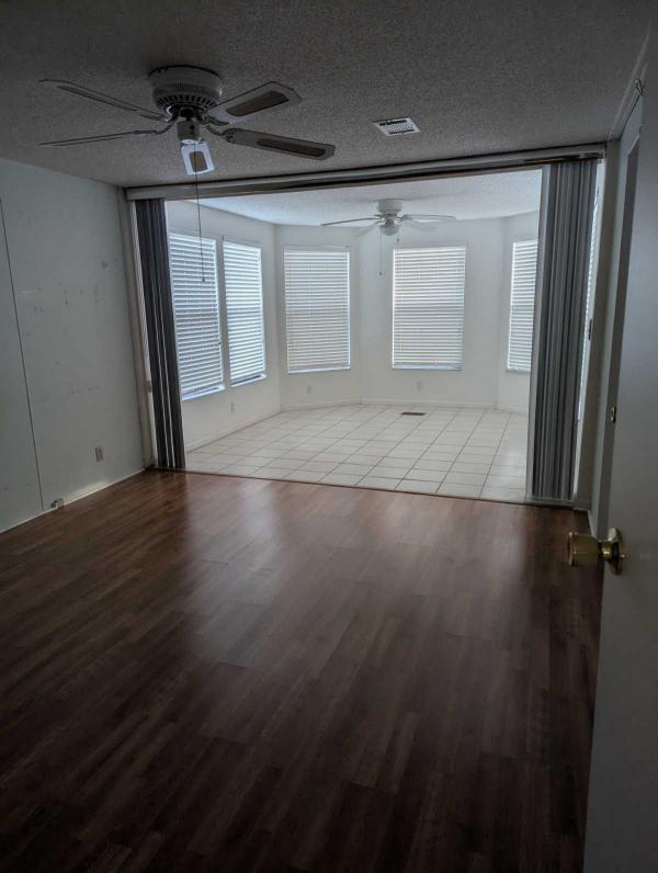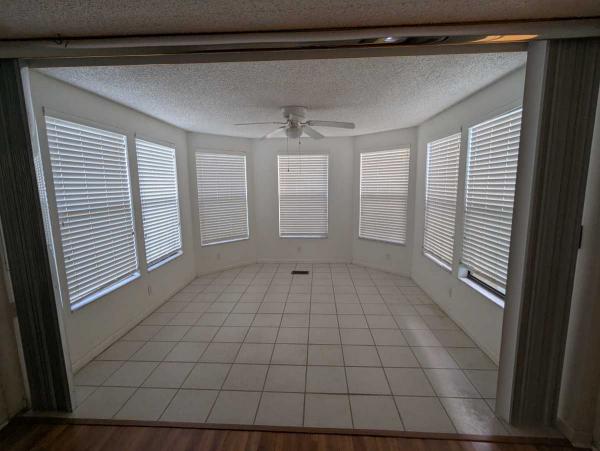 2 bedroom/2 bath mobile home located on a quiet street. Kitchen updated around 2019 with new counters, eating bar, and cabinet refinishing. New water heater in 2025. Master bedroom includes a master bath and walk-in closet. Home features a large 11x12 sitting room built off the master bedroom and finished with full-surround windows, plus a beautiful 9x15 front Florida room with acrylic windows all around, a drop ceiling with fan, and a separate entrance.