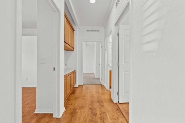 This home offers two bedrooms plus a true office, two full bathrooms, a spacious hallway with additional storage, and solar tubes that bring natural light into the bathrooms and the primary walk-in closet. The primary suite features a charming bay window with peaceful mountain views, brand-new industrial Berber-style carpet, dual shower heads, higher countertops, tall toilets (updated approximately four years ago), and thoughtful accessibility features.