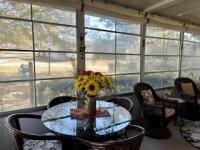 This beautiful home is in excellent condition. It sits on a shady lot in a quiet 55+ community. The home is fully furnished. It has a longer carport and a spacious porch with vinyl windows. Appliances included are washer and dryer, gas stove, refrigerator, microwave, and coffee maker. Bedroom has a queen bed with dresser and end table. Second bedroom has a trundle daybed with a dresser. Extra sheets and quilts are in the closet. Living room is furnished with sofa and 3 comfy chairs with end tables. Porch is furnished with table and 4 chairs, chairs and loveseat and end tables.