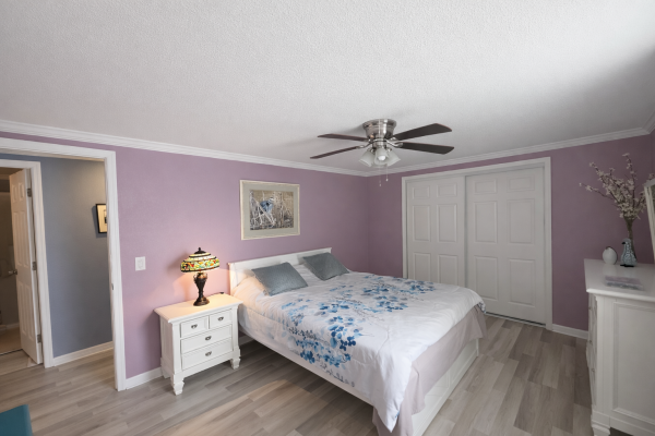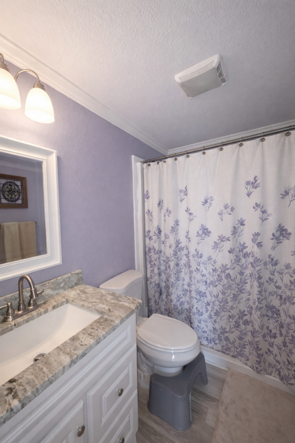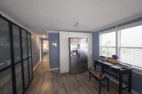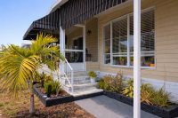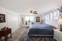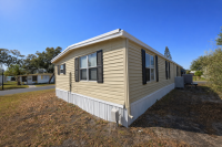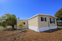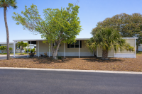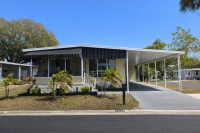 Pull up to this breathtaking 1,344-sq-ft, two-bedroom, two-bath, fully renovated corner-lot masterpiece, where no expense was spared and every detail was thoughtfully curated. The striking exterior features crisp vinyl siding, a 2022 TPO roof, lush established landscaping, and a two-car covered carport spanning the right side of the home-perfect for vehicles and a golf cart (available for just $1,500). A large storage shed anchors the carport, offering abundant space for seasonal décor and equipment, while the oversized lot creates a true gardener's paradise.