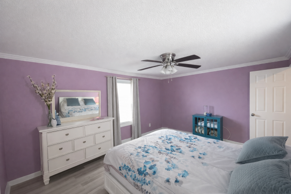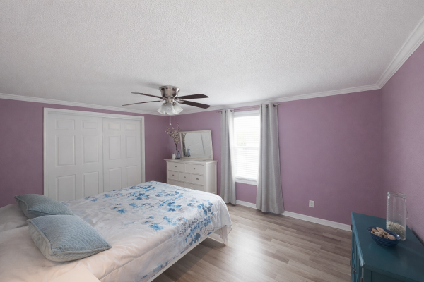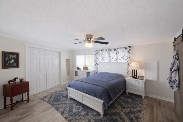 The guest suite offers generous space, a ceiling fan, dual-sliding closets, and a spa-inspired bath with granite-topped vanity and walk-in shower. Retreat to the luxurious primary ensuite featuring dual closets, ceiling fan, a dramatic barn door, and a custom seven-foot dual-showerhead tiled walk-in shower, complemented by a his-and-her granite vanity with modern finishes. Completing the home is a brand-new 2025 central HVAC system with new ductwork, delivering year-round comfort and peace of mind.