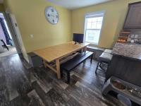 With tall flat ceilings, white paneled doors, crossbar windows, and recently painted sheetrock walls throughout, this home is stunning! The kitchen has a stove with a stainless steel vent hood, stainless steel side by side refrigerator with water and ice in the door, dishwasher, microwave, breakfast bar, a tall gooseneck pull down faucet, walk in pantry, and a window over the sink. There's even a separate dining room and the table can stay as a housewarming gift! The primary bedroom is spacious, has a walk in closet, and an attached bathroom with a large walk in shower with a hand held shower head. There's also a huge separate laundry room with double wall to wall overhead shelving, enough room for a freezer, and the washer and dryer are also staying! There's a built in bench with storage, blinds, central air, wood look vinyl flooring, and the white bunk bed with built in storage system in the second bedroom can also stay! Outside has trees, an 8x8 matching shed, fenced yard, and a rare 2+ car driveway! Pets are welcome also!