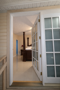 - Primary bedroom with French-door access to large screened enclosure