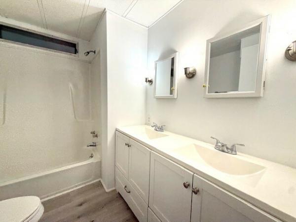 The kitchen features new cabinets, stainless steel appliances & beautiful porcelain tile countertops & backsplash. New luxury vinyl plank flooring is featured throughout the home. The primary bedroom includes a large walk-in closet & 3piece ensuite bath w/new vanity/stool & updated walk-in shower. The large guest bedroom features a large walk-in closet as well as a remodeled 3piece bath. The bath includes a new double vanity, stool, and updated tub/shower. Outside the home, you'll enjoy a large sunroom that includes a storage shed toward the rear as well as a large carport that can easily accommodate 2 vehicles. The seller has also installed energy efficient split systems to heat and cool this home! Take a few minutes to come see & appreciate this move in ready home! If you have questions or interest in setting an appointment, please reach out to Randy! Any potential buyers must meet community approval.