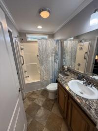 Welcome Home!!! This lovely double-wide home has it all. Full turn-key package includes all your kitchen needs, bath towels, and bed linens. This beautifully furnished home has wood cabinets, recently replaced carpet, new roof in 2025, and the water heater replaced in 2023. The guest bathroom is a jack and jill bathroom serving the hallway and the guest bedroom. Enjoy your morning coffee on the screened-in back porch with a partial view of the lake. Truly a must see home!!