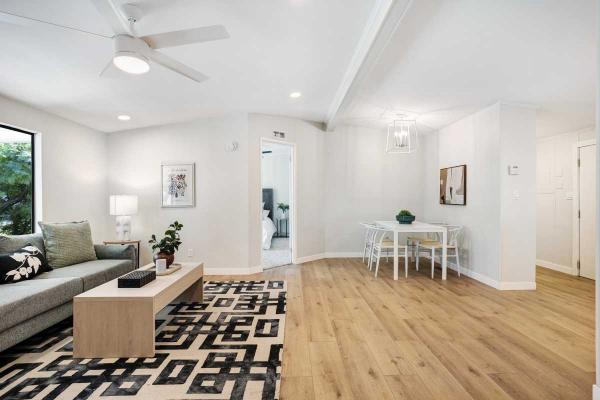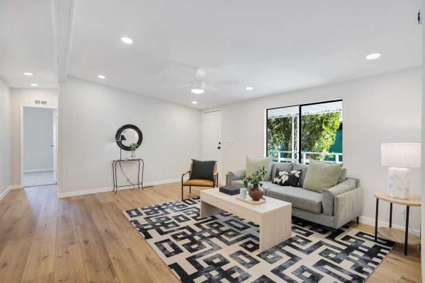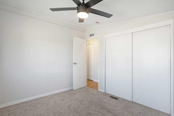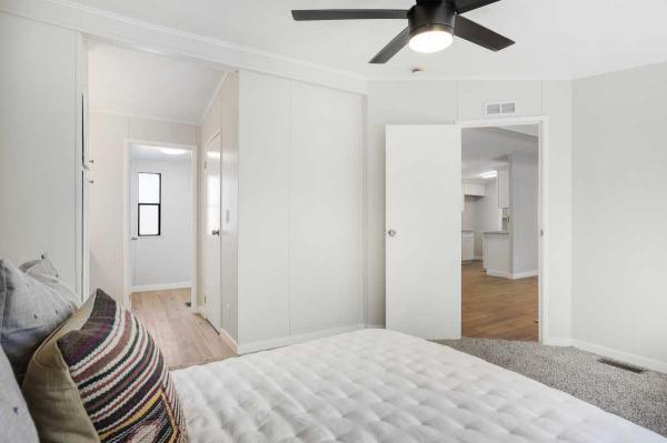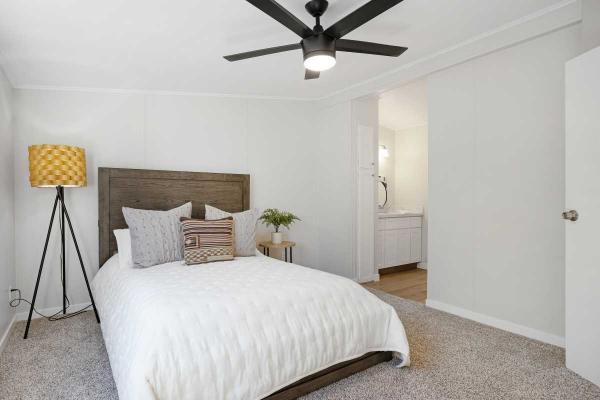 Luxury 55+ Living Awaits! Complete remodel. New Roof & A/C, 3-bed, 2-bath manufactured home on leased land. This move-in ready beauty boasts a custom kitchen with new stainless steel appliances, premium and countertops/cabinets. Enjoy new premium flooring, recessed lighting, ceiling fans, and a walk-in closet. Relax on the huge covered private patio. Covered parking and a generous outbuilding for storage or a workshop are included. Located in a gated, resort-style active 55+ community with all the amenities. Don't miss this opportunity!Cash, Conventional Financing.Fields in red are required.
