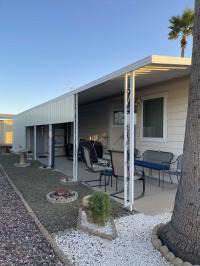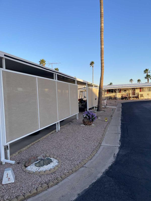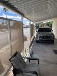 Length carport, patio on both sides. *Sunscreens on windows, sunshades and pull down shades on patio and carport sides. Inside washer/dryer w/overhead cabinets. Outdoor retractable privacy screen. *Attached storage room. *Detached 10x12 shed w/ electric. *Whole house water system. *Double pain insulated energy efficient windows. 2021*New hot water heater 2025. Roof 2023 w/ 5 year warranty. Painted outside 2022. *Maintenance free landscaping. *Yard treated for weeds once a year. *Preventative pest control 2x year. *Small table top fridge on carport side. *Living room loveseat and two end tables stay. Dining table and 4 chairs stay. Both patios have comfortable sitting areas. Some kitchen utensils, and dishes provided. *This home is truly turn key, move in ready and clean!! * Lot rent includes trash, sewer, and water.: $775. *Amazing location, Just steps from pool, hot tub and club house amenities. Pool tables, poker room, library, and gym. Shuffleboard and horseshoes. *Just a block from grocery stores, shopping, banking, and anything you need. *Seen by appointment only. Serious buyers only! *MUST BE PARK APPROVED !! In ElDorado Mobile Estates.