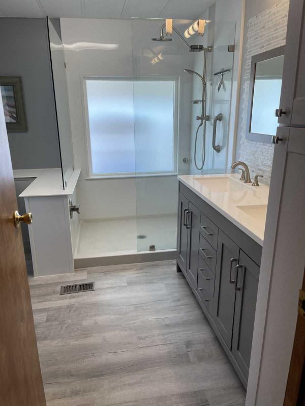 COMPLETE REMODEL in 2021 & 2022 Inside and out! High ceilings throughout. *Custom maple kitchen cabinets with pull out drawers and soft close doors. Under cabinet lighting. Pantry. Quartz countertops and sink. Breakfast bar and three padded stools. Ultra quiet Bosch dishwasher. High end Samsung appliances. Newer electric and plumbing 2021. *LVP throughout, 2021. *Walk in, easy clean, acrylic shower with rain shower and detachable wand.2024 Double sinks and raised toilet in Master suite. *Guest bedroom has large closet space. Guest bathroom includes a walk in w/ seat shower/tub combo, with heated and lighted jetted tub, removable shower head. Marble and decorative glass. Lighted sink faucet, new lighting and raised toilet, with soft close lid.2021 *Spacious Master Suite w/walk in closet. *This home features a large den. Large living and dining room featuring a lighted cabinet with glass shelving. *Built in blinds in sliding door. *Blinds and window coverings throughout. LVP throughout 2021. New high end carpet in dining and formal Living room 2021. New lighting and ceiling fans 2021. Full