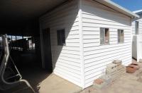 WALK INTO A LIGHT & BRIGHT LARGE FRONT LIVING ROOM WITH FLOOR TO CEILING WINDOWS! You may choose to dine at the large kitchen breakfast bar or in the good-sized dining area with its built-in double hutch. Besides the living room, there's a separate big family room which is great for entertaining or watching TV. The nice-sized kitchen boasts much storage and a garbage compactor. The king-sized primary bedroom has an ensuite bathroom with a double-sized step-in shower stall and linen closet. The good-sized guest bedroom has private access to the guest bath which is also accessible from the living area. The over-sized laundry room has lots of extra storage and space for an additional refrigerator or freezer. There's EZ-care laminate flooring throughout. On those pleasant days and evenings you and your guests will enjoy having coffee or cocktails on the 256-square-foot covered deck. For convenience, the deck is accessible from both the living room and family room. You may also access the deck from the front ramp or rear stairs. You will appreciate the energy efficiency produced by the long-lasting foam/metal roof and insulated lap siding. The home includes three storage sheds, two of which are workshops and one of the workshops is air-conditioned. Your two-large non-aggressive dogs will enjoy playing in the enclosed backyard. Comanche Wells Co-operative is a luxury adult community with a large socially-active clubhouse, indoor pool, outdoor pool, indoor Jacuzzi, arts and crafts room, library, exercise room, card room, large weekly bingo game and much more! It is located on the near northwest side close to shopping, restaurants, transportation, a large hospital and the freeway.FINANCING AVAILABLE