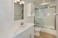 In addition, the guest bathroom also includes a floor to ceiling tile tub shower. This is a luxury item as most new homes have a tile shower in the master bathroom but not in the guest bathroom.