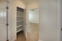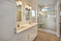 The master bathroom is large and includes a floor to ceiling tile shower, quartz counters, 2 linen closets, dual sinks and a private water closet/toilet room.