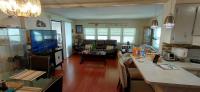 This home has a 5-year-old central heat and air unit, as well as a 5-year-old membrane roof over (with transferable warranty for 15 more years). The home has newer double pane vinyl windows and blinds. The kitchen has a tiled backsplash, breakfast bar, a disposal and a double sink. There is a front Florida room, and a screened lanai area. The washer and dryer are newer and located in the shed. Newer plank flooring in the two bedrooms. The home has storm shutters, a 2 carport and a full-sized water heater. Some updated lighting as well. Sold partially furnished, including living room couch.