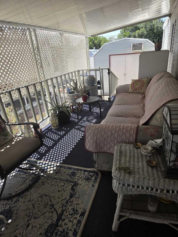 Covered PATIO/PORCH has outdoor carpeting, Bougainvillea Bushes, 2 Staircases and opens to Front Door and 2nd Storage Shed 10x10 with electricity for the Carpenter- Handyman