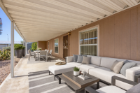 Welcome to Rancho Mirage (55+), a gated community in Apache Junction with the Superstition Mountain backdrop. This corner-lot home offers an open layout with vaulted ceilings, a bright dining bay window, and an office/den with built-in desk. The Arizona Room is a standout-perfect for hobbies, crafts, or a year-round bonus space. HVAC is approx. 2 years old and the home is partially furnished for an easy move-in. Community perks include a pool, pet park, pitch & putt golf, and even an RC car speedway.