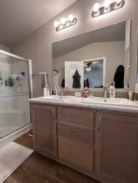 Impeccably maintained 2020 Cavco home located in a highly desirable gated 55+ community on the east side. This beautifully designed 2-bedroom, 2-bath residence features a bright and airy front island kitchen with abundant natural light, cathedral ceilings, and modern recessed lighting. The kitchen comes fully equipped with stainless steel appliances, including a French door refrigerator.