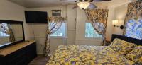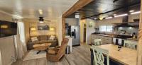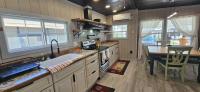 Beautifully renovated and full of character, this one-of-a-kind modern cottage offers the perfect blend of style, comfort, and functionality. Inspired by today's most popular HGTV trends, this fully furnished single-wide home showcases a stunning modern rustic design and is completely move-in ready - just bring your suitcase. Inside, a bright open-concept layout features luxury vinyl plank flooring, upgraded R-17 insulation for energy efficiency, and beautifully finished shiplap walls. The ceilings are accented with sleek black-painted tiles, adding a bold, designer touch throughout, while a newly installed mini-split A/C system keeps the home cool and comfortable year-round. The kitchen is a true showpiece, boasting custom soft-close cabinetry stocked with essentials, a large farmhouse sink, eye-catching patterned ceramic tile countertops, and a full suite of new appliances including a refrigerator, microwave, and 5-burner stove with oven. A convenient pot filler above the stove and a charming coffee and wet bar with a matching mini sink add both style and functionality. The enclosed patio has been seamlessly integrated into the home, expanding the living space into one cohesive, air-conditioned area with a custom wood beam entry - perfect for relaxing or entertaining. The bedroom offers a cozy queen bed, dresser, and peaceful views of the forest, while the living area includes a queen sleeper sofa, swivel-mounted TV, and a farmhouse dining table with chairs. All furnishings, kitchenware, and linens are included, making this a true turnkey opportunity. Outside, enjoy the rare benefit of a grandfathered two-car carport and a private elevated back deck overlooking the natural beauty of Werner-Boyce Salt Springs State Park. With no rear neighbors, the home offers serene views filled with birds and wildlife, creating a peaceful retreat. Located in an active 55+ community, residents enjoy amenities including a heated pool, pet-friendly environment, and a vibrant social atmosphere. Lot rent is $810 per month for six months and $460 per month for the remaining six months, and includes water, sewer, and trash.
