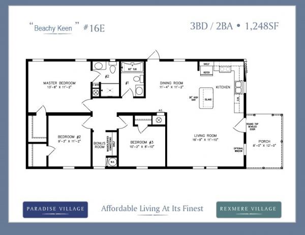 "Beachy Keen" is an adorable three-bedroom, two-bath residence built in 2020, surrounded by palm trees and lush lawns. The classic tan exterior features a covered carport with desirable side-by-side parking for two vehicles. A charming half porch with light wood decking leads to a pretty glass-paneled front door and offers a lovely place to relax and enjoy the views and South Florida weather. Inside, the home features well-finished, modern interiors and a spacious open-plan living, dining, and kitchen layout with attractive plank flooring throughout the main living areas. The living room is filled with natural light from large paned windows with thick lineals, a detail that adds character and gives the home a more substantial, architectural feel. Ceiling fans and a chandelier fan help regulate airflow and enhance everyday comfort. The kitchen, positioned opposite the living room, includes a built-in microwave, dishwasher, and stove/oven, along with wood-toned cabinetry and ample counter space. A floating island provides visual separation from the dining area and includes an overhang for bar seating, making it ideal for casual meals or use as a convenient workspace. From the dining area, a hallway leads to the spacious primary bedroom featuring an en-suite bath and a large walk-in closet. The second and third bedrooms also offer walk-in closets and share a full second bathroom with a shower/tub combination. All bedrooms feature matching plank flooring for a cohesive look and ceiling fans for added comfort, along with large windows that provide abundant natural light. A versatile bonus room between the two secondary bedrooms includes washer and dryer connections and built-in shelving, functioning perfectly as a combined laundry and storage space (washer and dryer are included in the sale). Finally, like all homes in this lovely lakeside community, you will enjoy central air and heat, off-street covered parking, your own outdoor storage shed, professional landscaping and sprinkler system, and access to the community's extensive recreational amenities including an oversized heated pool complex, fitness center, tennis, basketball, clubhouse, sauna, lake recreation, and more.
