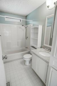 Full Bathroom 2 with tub/shower combination, vanity with Granite counter, and linen storage cabinet.