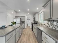 MUST SEE gorgeously upgraded 2025 3 Bd 2 BA Cavco Berkley double on a Premium corner lot with mountain views, located highly desirable access controlled 55+ Tucson Meadows. EZ care commercial grade LVP flooring throughout eliminates trip hazards and keeps feet happy! Fall in love with the kitchen with upgraded cabinets, soft close drawers, and stainless appliances. Keep cool with shade awnings over bedroom windows & enjoy carefree mornings socializing from your screened-in front porch. Keep your vehicles protected under a 3 car tandem carport with sunscreens running the full length of carport and driveway & Lots of storage outside with not just 1 but 2 8x12 climate controlled tuff sheds each set on concrete slabs. This is luxury retirement living at it's finest!